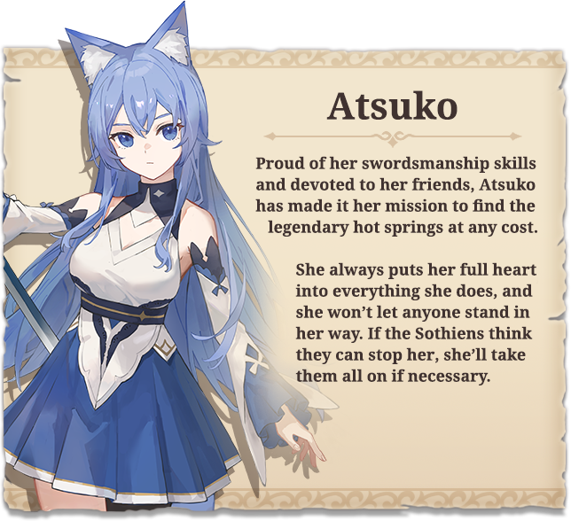 Lighthearted story as Atsuko fights to prove herself to the opposing Sothiens and find the legendary hot springs.