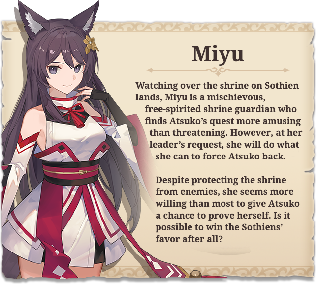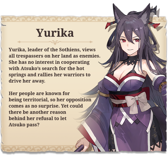 Nezori is a lighthearted action RPG set in a world inhabited by fox girls and wolf girls. When the young fox girl Atsuko learns of the legendary hot springs long since forgotten by her people, she sets out on a quest to find it by exploring the territory of the wolf-like Sothiens.