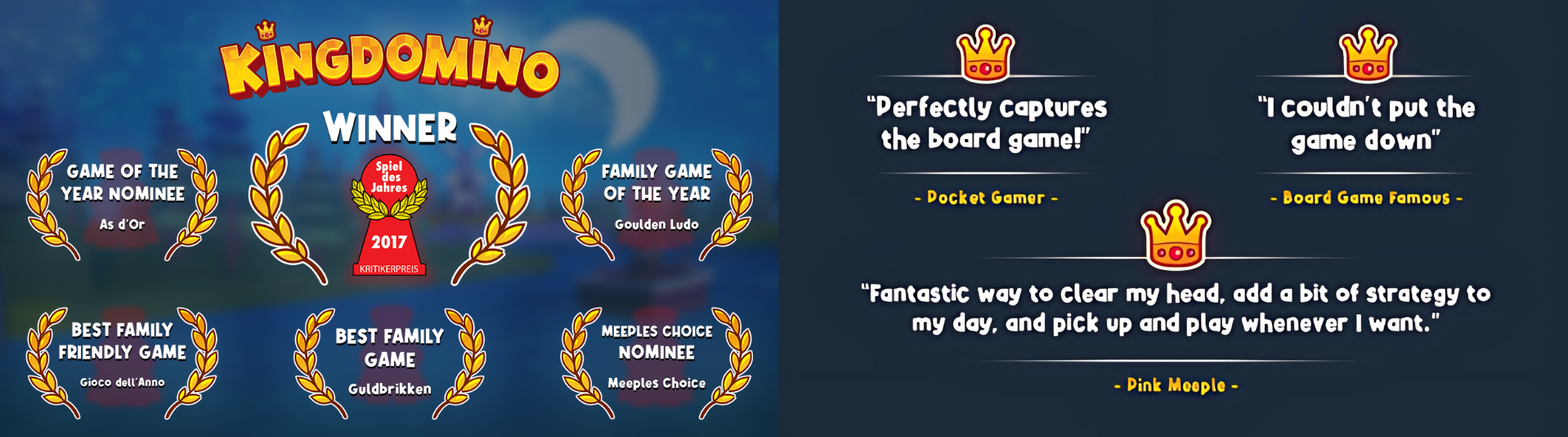 Games take 10-20 minutes, making Kingdomino perfect for quick sessions or hours of strategic kingdom building!